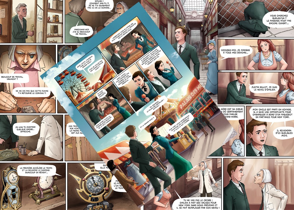 Projet BD sur fond de passages parisiens, qui n'a pas trouvé d'éditeur malheureusement.