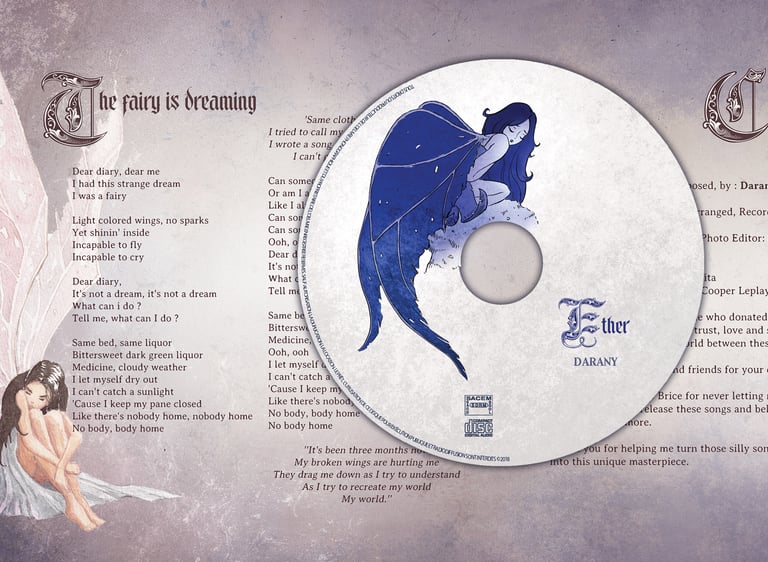 Darany m'a laissé illustrer et maquetter le livret, le CD et la couverture de son premier Album. Cliquez pour plus de détais
